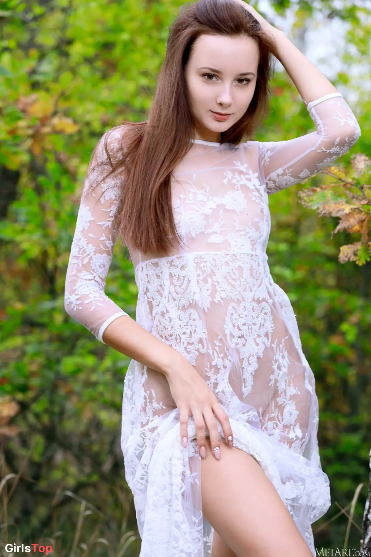 Изысканная невеста позирует в природе — Rosalina B